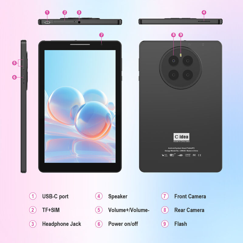 Описание продукта:Представляем C-идею CM936, предназначенную для повышения вашего цифрового опыта до новых высот.Этот планшет обеспечивает бесперебойную многозадачность и плавную работу для всех ваших задач. С просторным 8-дюймовым IPS дисплеем и ARM Mali-400 MP2 GPU, наслаждайтесь потрясающими визуальными эффектами и захватывающим игровым опытом.и СМИ с легкостью благодаря щедрому 512 ГБ хранилища EMMCОставайтесь на связи в движении с высокоскоростным Wi-Fi и дополнительной поддержкой 2G / 3G / 5G, и захватывайте каждый момент с помощью задней камеры 8MP.,CM936 предлагает универсальность и удобство, куда бы вы ни отправились. CM817 AIR является идеальным компаньоном для работы.развлечения, и все между ними.